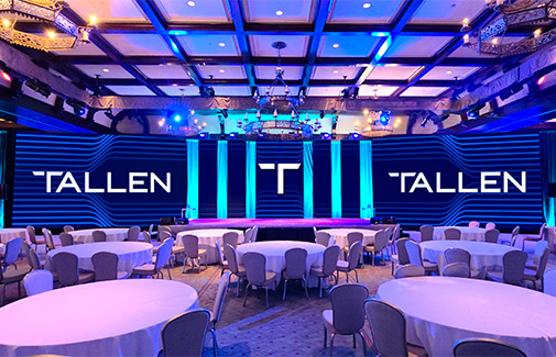 Tallen recently supported a multi-day incentive event at The Cloister at Sea Island, delivering full AV production for general sessions, multiple breakouts, a 22-person panel, and a 300-attendee awards dinner featuring live performances. Our team led several weeks of pre-event planning, including content creation, script development, and coordination with hotel and third-party partners. With only one day to complete setup, compounded by an uneven floor and no loading dock, our crew of 25+ executed a complex build using three 26’ trucks of equipment. As this client’s trusted partner for this particular program for five consecutive years, we continue to evolve the visual experience while honoring budget and creative goals.
